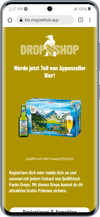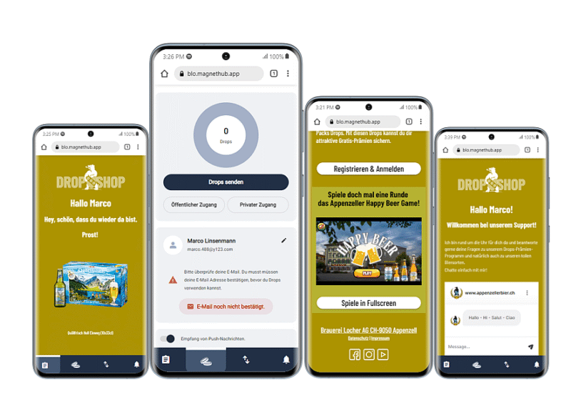 All homepage content is fully customizable by Appenzeller Bier. Once you’ve successfully registered, you’ll have access to your personal wallet, including the DropShop and digital customer card.